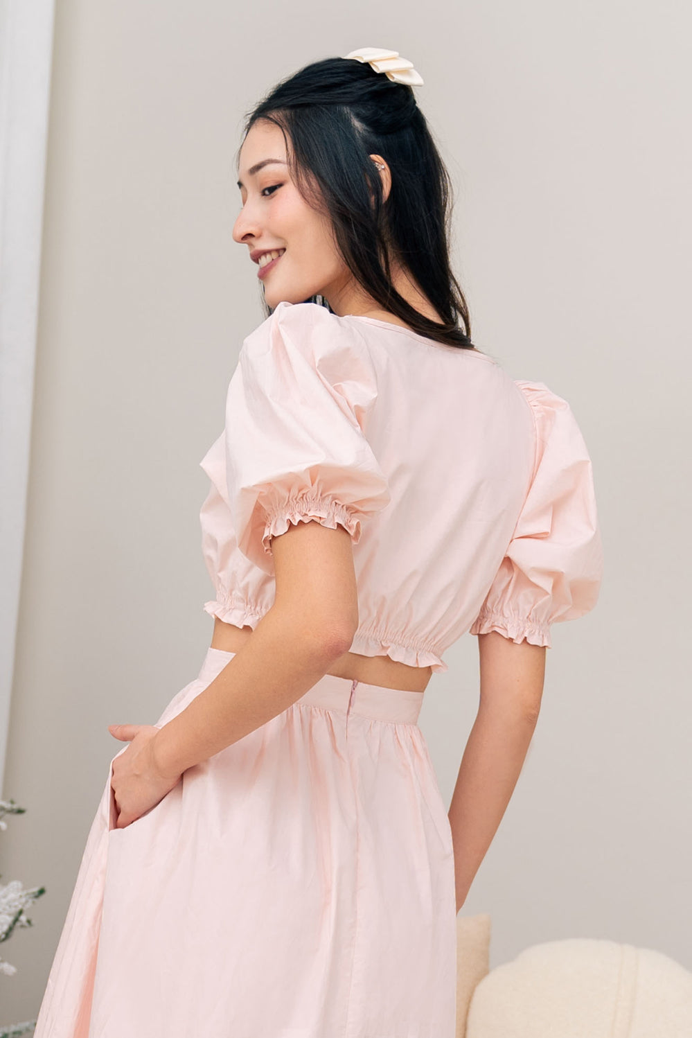 Model: UK 6 to 8, 175cm, PTP 15.5", Waist 12". Wears Size S with allowance at waist.